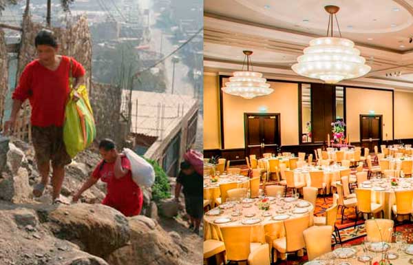 En el informe, presentado en el Marriott, un hotel de lujo y cinco estrellas, se detalla que en el país existen familias de diez hijos que sobreviven con 20 soles al mes, viven sin agua ni luz y milagrosamente aún son honradas, pese a que el Estado y las instituciones privadas no hacen nada por ellos.