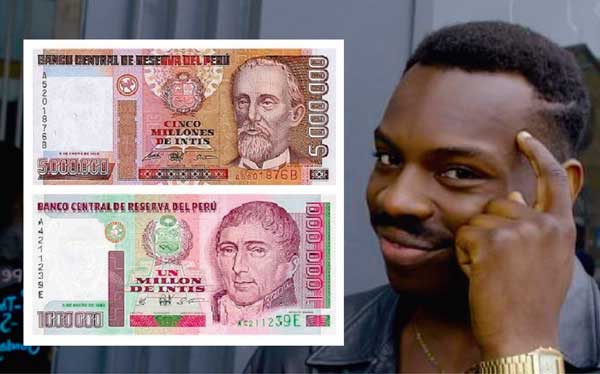 Ante esa realidad que nos recuerda a la crisis del primer Gobierno de Alan García, los apristas han solicitado al Ministerio de Economía cambiar la actual moneda por el Inti, para estar a la altura de las circunstancias y ver si tal vez la comunidad internacional nos tiene pena y nos ayude.